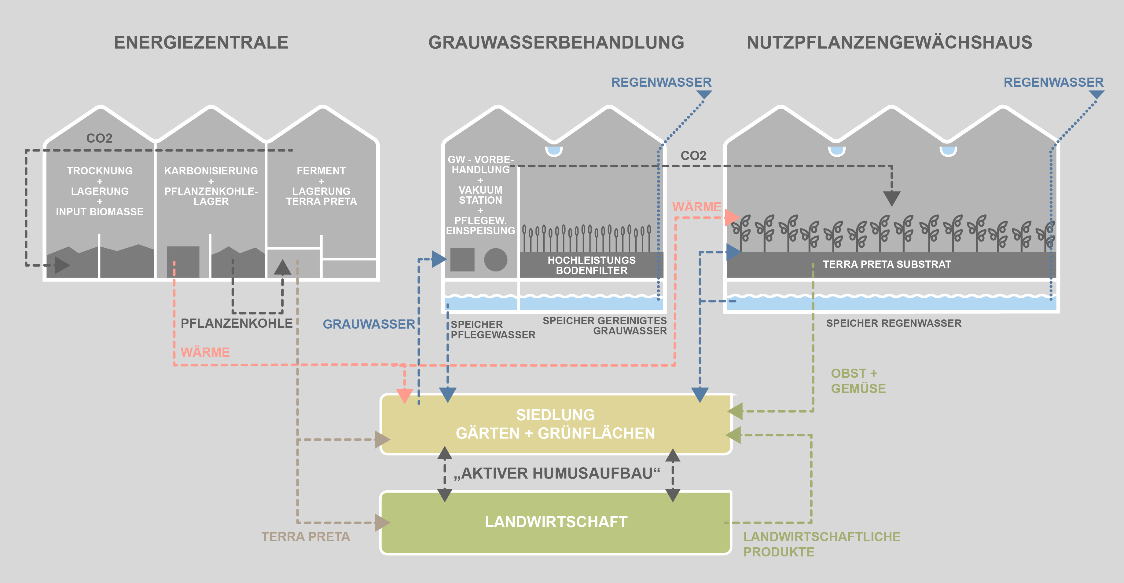 ricionoase21 creates a holistic supply and disposal solution for urban areas (villages, towns and city districts) through the intelligent and synergetic combination of ricioncore technologies(ricionterra, ricioncarbo and ricionaqua). Through site-specific overall planning, biogenic residual materials and wastewater from urban areas, gardening, agriculture and industry are processed as valuable materials or resources and refined into products. This conversion creates considerable local added value, in which citizens often participate.